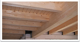 Dachstuhl mit Strebe zum Holzbalken in Deckenlage